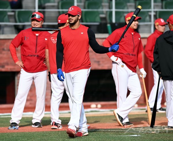 1일 인천 SSG 랜더스필드에서 ‘2022 신한은행 SOL KBO리그’ SSG 랜더스와 키움 히어로즈의 한국시리즈 1차전 경기가 열린다. 경기 전 SSG 라가레스가 훈련을 준비하고 있다.
