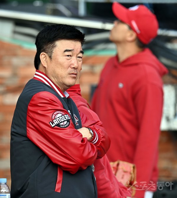 1일 인천 SSG 랜더스필드에서 ‘2022 신한은행 SOL KBO리그’ SSG 랜더스와 키움 히어로즈의 한국시리즈 1차전 경기가 열린다. 경기 전 SSG 민경삼 대표가 훈련을 지켜보고 있다.