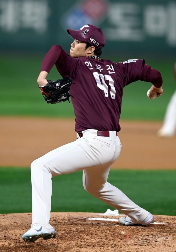 1일 인천 SSG랜더스필드에서 ‘2022 신한은행 MY CAR KBO리그’ 한국시리즈 1차전 키움 히어로즈와 SSG 랜더스 경기가 열렸다. 선발 투수로 등판한 키움 안우진이 역투하고 있다.