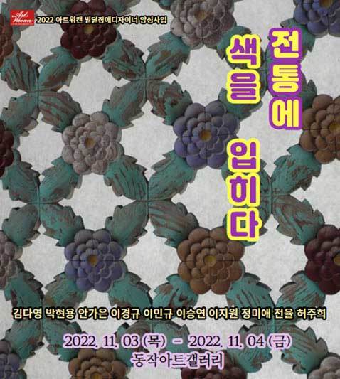 (사)한국발달장애인문화예술협회 아트위캔(대표: 왕소영)은 11월 3일(목)~4일(금) 동작아트갤러리에서 ‘2022 아트위캔 발달장애 디자이너 양성사업’ <전통에 색을 입히다> 작품 전시회를 개최한다.