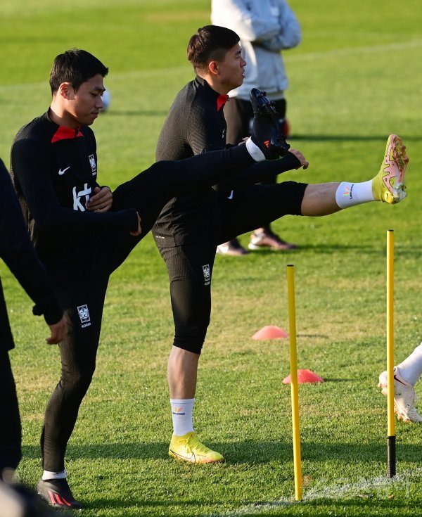 한국축구대표팀이 2일 경기도 파주 축구대표팀트레이닝센터(NFC)에서 2022 FIFA 카타르 월드컵 대비 아이슬란드와 마지막 국내 평가전에 앞서 소집훈련을 진행했다. 한국 권창훈이 몸을 풀고 있다.