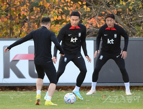 한국축구대표팀이 2일 경기도 파주 축구대표팀트레이닝센터(NFC)에서 2022 FIFA 카타르 월드컵 대비 아이슬란드와 마지막 국내 평가전에 앞서 소집훈련을 진행했다. 한국 박지수와 정우영이 훈련을 하고 있다.