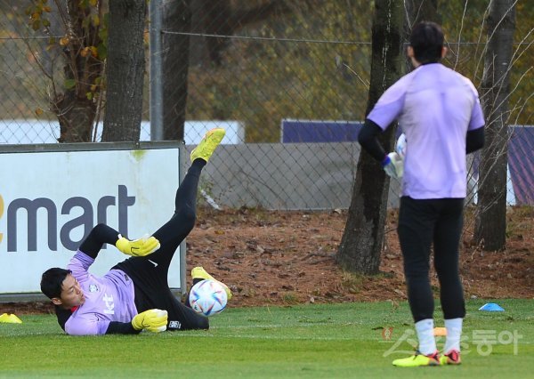 한국축구대표팀이 2일 경기도 파주 축구대표팀트레이닝센터(NFC)에서 2022 FIFA 카타르 월드컵 대비 아이슬란드와 마지막 국내 평가전에 앞서 소집훈련을 진행했다. 한국 구성윤이 골키퍼 훈련을 하고 있다.