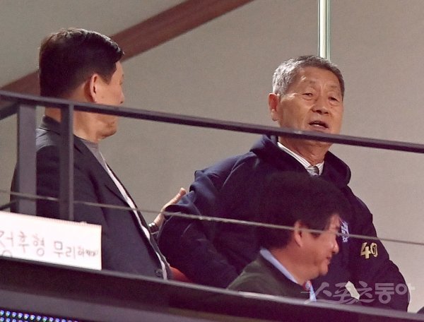 2일 인천 SSG랜더스필드에서 ‘2022 신한은행 MY CAR KBO리그’ 한국시리즈 2차전 키움 히어로즈와 SSG 랜더스 경기가 열렸다. 김성근 전 SK 감독이 관전을 하고 있다.