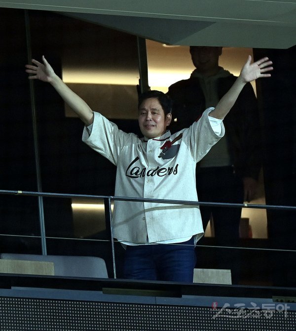 2일 인천 SSG 랜더스필드에서 ‘2022 신한은행 SOL KBO리그’ SSG 랜더스와 키움 히어로즈의 한국시리즈 2차전 경기가 열렸다. SSG가 키움을 상대로 6-1로 승리한 후 정용진 구단주가 팬들에게 인사하고 있다.