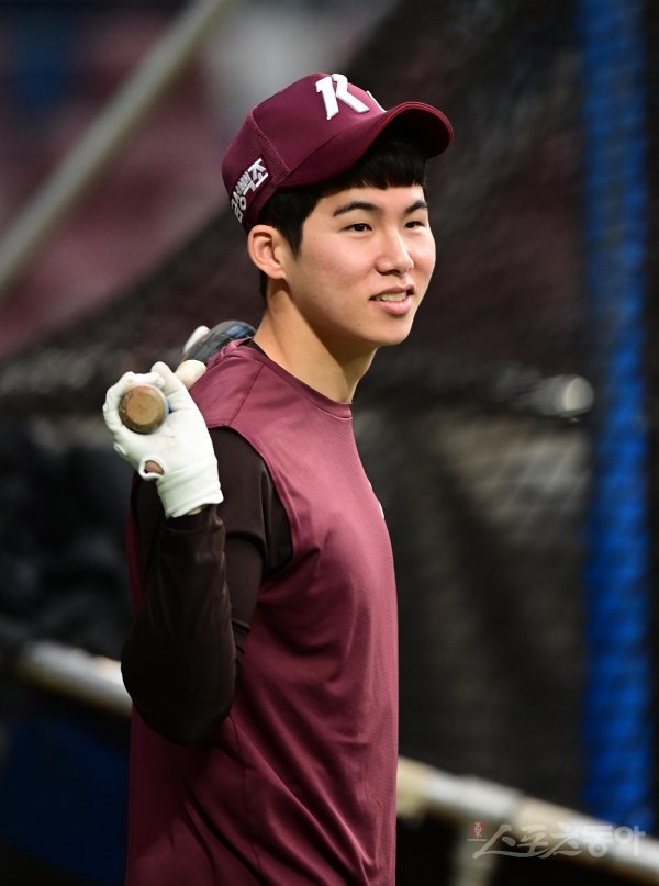 5일 서울 고척스카이돔에서 열린 ‘2022 신한은행 SOL KBO리그’ 한국시리즈 4차전 키움 히어로즈와 SSG 랜더스의 경기에 앞서 키움 김혜성이 동료들의 훈련을 지켜보고 있다.