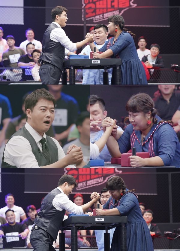 야구에 시구, 축구에 시축이 있듯 ‘오버 더 톱’도 본선 개막을 축하하기 위해 MC 전현무와 홍일점 김민경의 팔씨름 스페셜 매치가 진행된다.