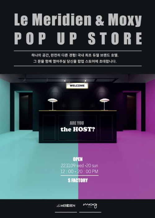 르메르디앙& 목시 서울 명동에 대한 기대감을 높이고, 고객에게 호텔을 미리 경험할 수 있는 기회를 제공하기 위해 마련됐다. 르메르디앙& 목시 서울 명동은 국내 유일의 듀얼 브랜드 호텔로 같은 공간의 두 호텔에서 다양한 경험을 할 수 있는 차별점이 있다. 팝업스토어도 호텔 별 공간을 각각 체험 후 내 취향에 맞는 스위트룸의 주인 ‘더 호스트’가 될 수 있다는 흥미로운 내러티브를 담고 있다.