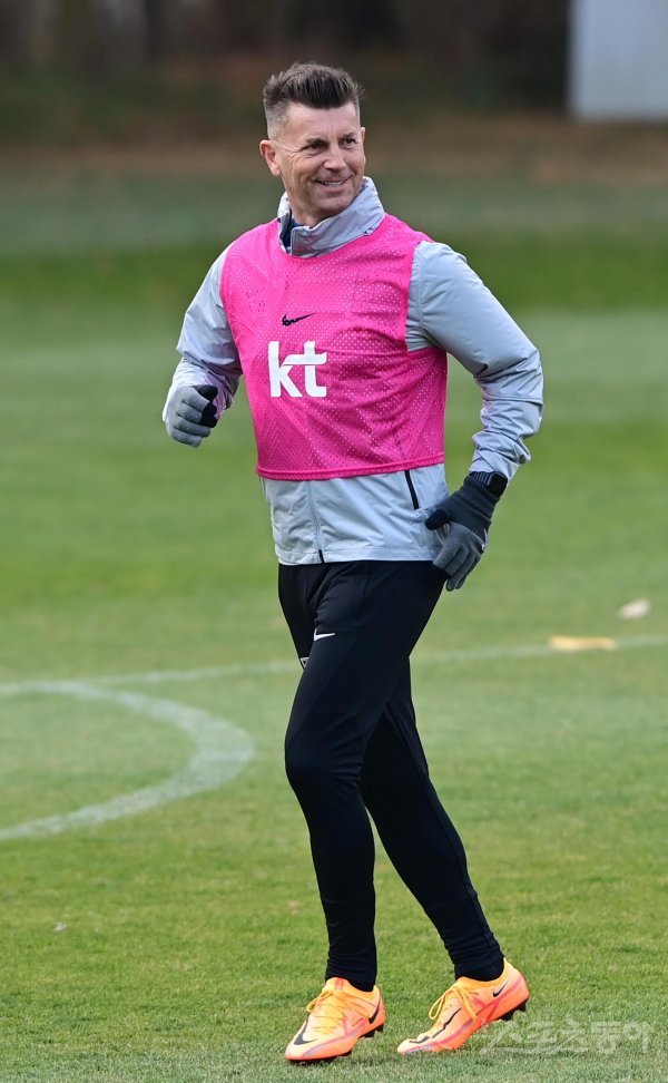 한국여자축구대표팀이 7일 경기도 파주 축구대표팀트레이닝센터(NFC)에서 뉴질랜드와 원정 평가전에 앞서 소집훈련을 진행했다. 한국 콜린 벨 감독이 선수들의 훈련 전 몸을 풀고 있다.