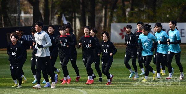 한국여자축구대표팀이 7일 경기도 파주 축구대표팀트레이닝센터(NFC)에서 뉴질랜드와 원정 평가전에 앞서 소집훈련을 진행했다. 한국 선수들이 런닝을 하고 있다.