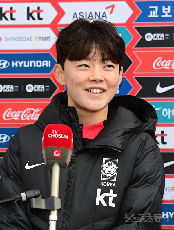 한국여자축구대표팀이 7일 경기도 파주 축구대표팀트레이닝센터(NFC)에서 뉴질랜드와 원정 평가전에 앞서 소집훈련을 진행했다. 한국 배예빈이 훈련을 마친 후 취재진과 인터뷰를 하고 있다.