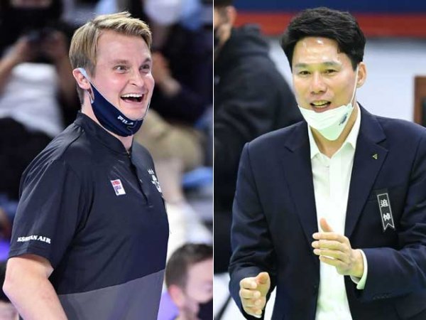 토미 틸리카이넨 대한항공 감독(왼쪽), 강성형 현대건설 감독. 사진제공 | KOVO