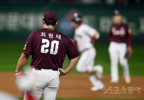 7일 인천 SSG랜더스필드에서 ‘2022 신한은행 MY CAR KBO리그’ 한국시리즈 5차전 키움 히어로즈와 SSG 랜더스 경기가 열렸다. 키움 최원태가 9회말 1사 1,3루 SSG 김강민에게 끝내기 스리런 홈런을 허용하고 있다.