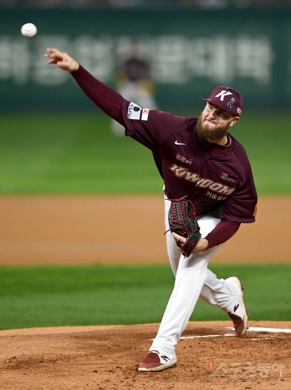 8일 인천 SSG랜더스필드에서 ‘2022 신한은행 MY CAR KBO리그’ 한국시리즈 6차전 키움 히어로즈와 SSG 랜더스 경기가 열렸다. 선발 투수로 등판한 키움 애플러가 역투하고 있다.