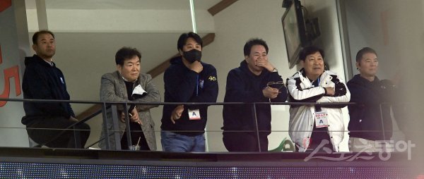 8일 인천 SSG랜더스필드에서 ‘2022 신한은행 MY CAR KBO리그’ 한국시리즈 6차전 키움 히어로즈와 SSG 랜더스 경기가 열렸다. KBO 레전드들이 관전을 하고 있다.
