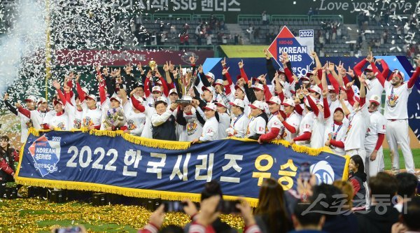 8일 인천 SSG랜더스필드에서 ‘2022 신한은행 MY CAR KBO리그’ 한국시리즈 6차전 키움 히어로즈와 SSG 랜더스 경기가 열렸다. SSG가 4-3 승리를 거두며 시리즈 전적 4승 2패로 한국시리즈 우승을 차지했다.