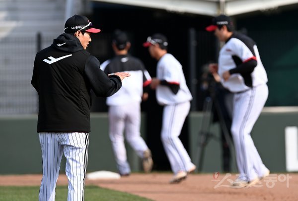 9일 경기도 이천 LG챔피언스파크에서 열린 LG 마무리캠프에서 염경엽 신임 감독이 퓨처스 선수들을 지도하고 있다.