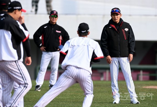 9일 경기도 이천 LG챔피언스파크에서 열린 LG 마무리캠프에서 염경엽 신임 감독이 퓨처스 선수들을 지도하고 있다.