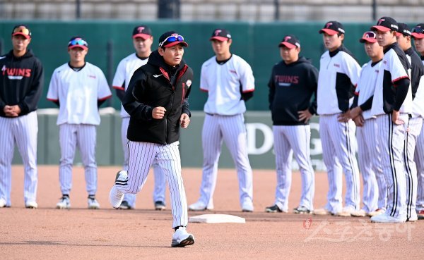 9일 경기도 이천 LG챔피언스파크에서 열린 LG 마무리캠프에서 염경엽 신임 감독이 퓨처스 선수들을 지도하고 있다.