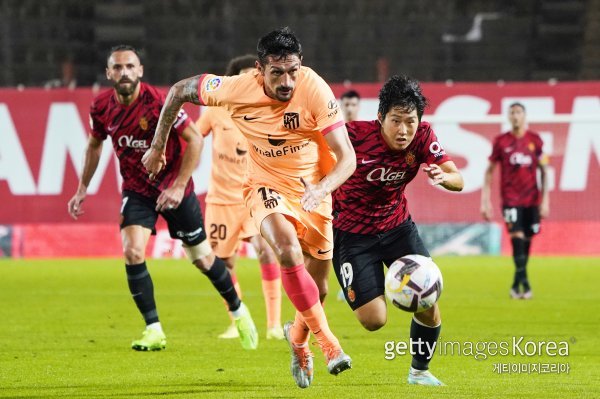 마요르카 이강인이 아틀레티코 마드리드 스테판 사비치와 볼을 다투고 있다. 사진=게티이미지코리아.