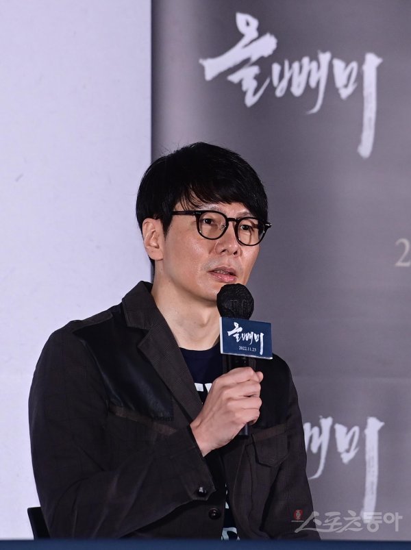 안태진 감독이 10일 서울 용산구 CGV용산아이파크몰점에서 열린 영화 ‘올빼미’ 언론시사회에서 인사말을 하고 있다.