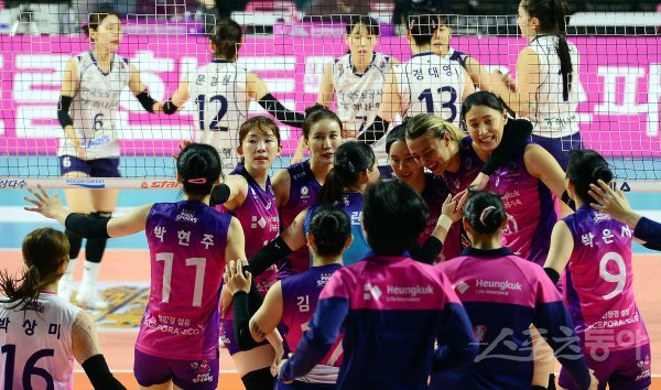 13일 인천 삼산월드체육관에서 ‘2022-2023 도드람 V리그’ 인천 흥국생명과 김천 한국도로공사의 여자부 경기가 열렸다. 흥국생명이 한국도로공사를 상대로 세트스코어 3-2로 승리한 후 선수들이 코트에서 기쁨을 나누고 있다.