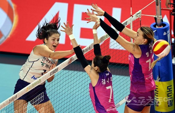13일 인천 삼산월드체육관에서 ‘2022-2023 도드람 V리그’ 인천 흥국생명과 김천 한국도로공사의 여자부 경기가 열렸다. 한국도로공사 카타리나가 흥국생명 블로커를 피해 스파이크를 날리고 있다.