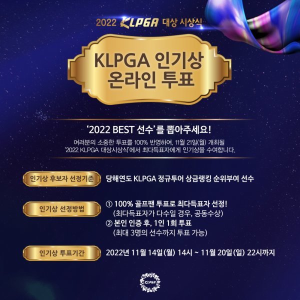 한국여자프로골프협회(KLPGA)가 2022시즌 KLPGA 투어를 빛낸 ‘인기상’ 온라인 투표를 진행한다.