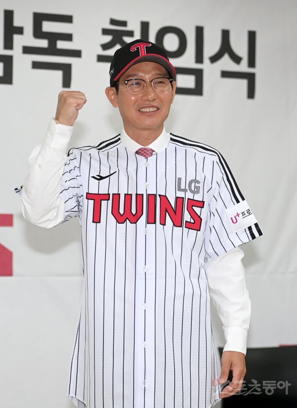 LG 트윈스 제14대 사령탑 염경엽 감독이 14일 서울 잠실야구장에서 진행된 취임식을 마치고 포토타임을 갖고 있다.