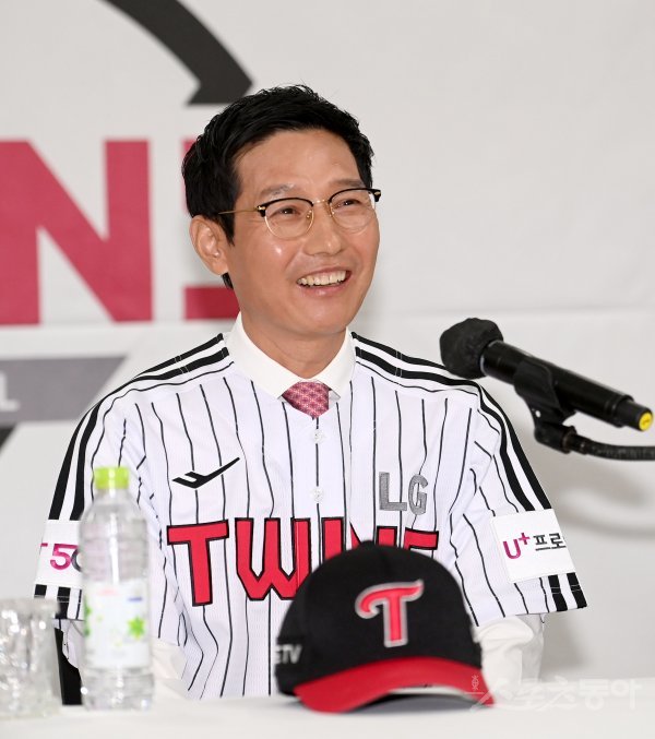 LG 트윈스 제14대 사령탑 염경엽 감독이 14일 서울 잠실야구장에서 진행된 취임식에서 취재진의 질문에 대다하고 있다.
