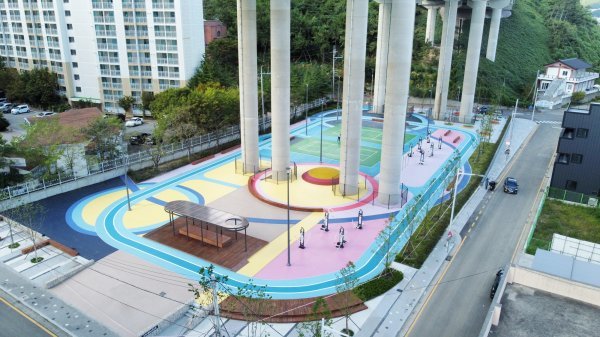 어두컴컴했던 고속도로 하부 공간이 주민 건강·소통 공간으로 탈바꿈했다.부지면적 4401㎡에 시니어 놀이터 등 조성