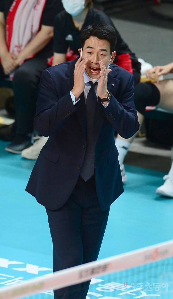 15일 서울 장충체육관에서 열린 ‘2022~2023 도드람 V-리그’ 여자부 GS칼텍스와 KGC인삼공사 경기에서 KGC인삼공사 고희진 감독이 작전 지시를 하고 있다.