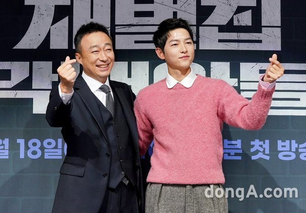 배우 이성민, 송중기가 17일 오후 서울 영등포구 여의도 페어몬트 앰배서더 서울에서 JTBC 금토일드라마 ‘재벌집 막내아들’(연출 정대윤 극본 김태희 장은재) 제작발표회에 참석했다.