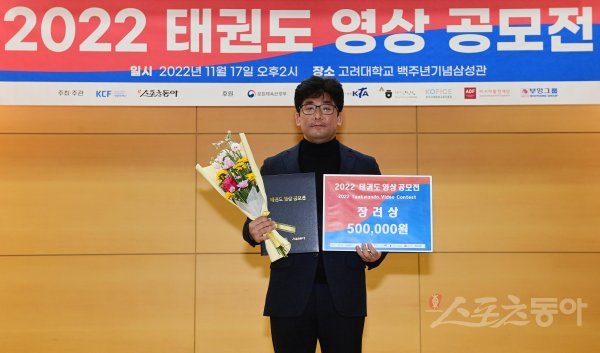 ‘2022 태권도 영상 공모전(한문화재단 주최, 스포츠동아 주관)’ 시상식이 17일 성북구 안암동 고려대학교 백주년기념삼성관에서 열렸다. 다이내믹 부문 장려상을 수상한 한국스포츠과학연구소가 기념 촬영을 하고 있다.