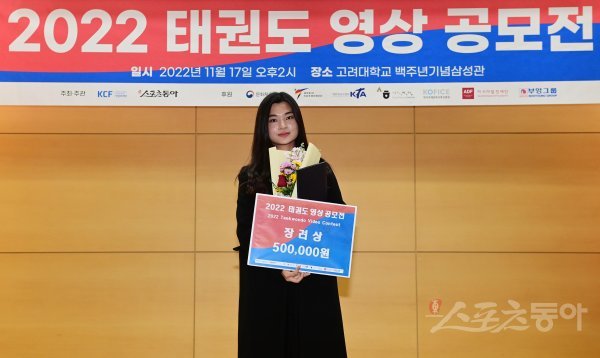‘2022 태권도 영상 공모전(한문화재단 주최, 스포츠동아 주관)’ 시상식이 17일 성북구 안암동 고려대학교 백주년기념삼성관에서 열렸다. K-Pop 태권댄스 부문 장려상을 수상한 경희대 익스트림이 기념 촬영을 하고 있다.