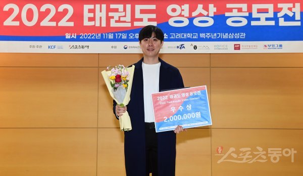 ‘2022 태권도 영상 공모전(한문화재단 주최, 스포츠동아 주관)’ 시상식이 17일 성북구 안암동 고려대학교 백주년기념삼성관에서 열렸다. K-Pop 태권댄스 부문 우수상을 수상한 K-타이거즈 세종관 블랙이 기념 촬영을 하고 있다.