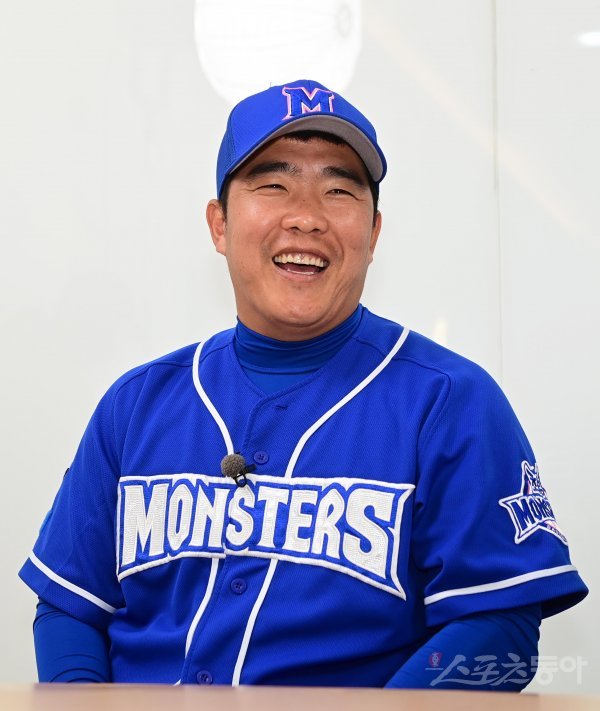 20일 서울 잠실야구장에서 열린 두산베어스 ‘곰들의 모임’ 환담회 및 최강야구와 연습 경기에 앞서 최강야구 정근우가 취재진의 질문에 답하고 있다.