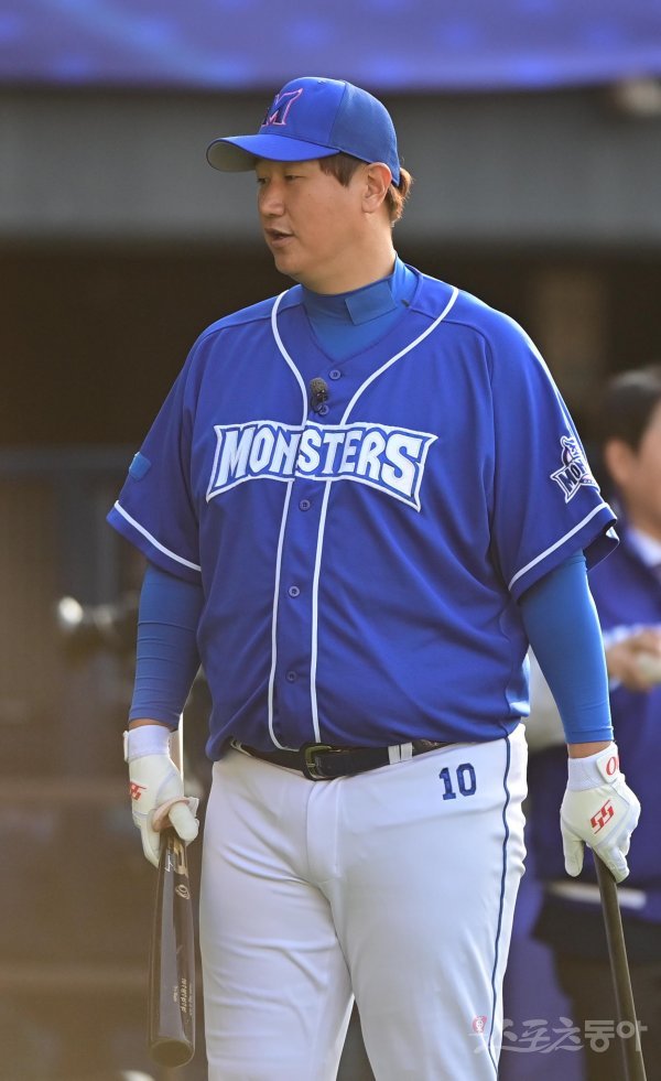 20일 서울 잠실야구장에서 열린 두산베어스 ‘곰들의 모임’ 환담회 및 최강야구와 연습 경기에 앞서 최강야구 이대호가 훈련을 준비하고 있다.