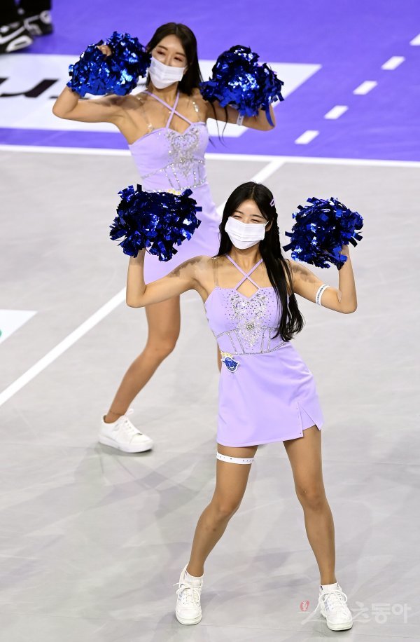 20일 인천 계양체육관에서 ‘2022-2023 도드람 V리그’ 인천 대한항공과 안산 OK금융그룹의 남자부 경기가 열렸다. 대한항공 치어리더가 화려한 공연을 선보이고 있다.