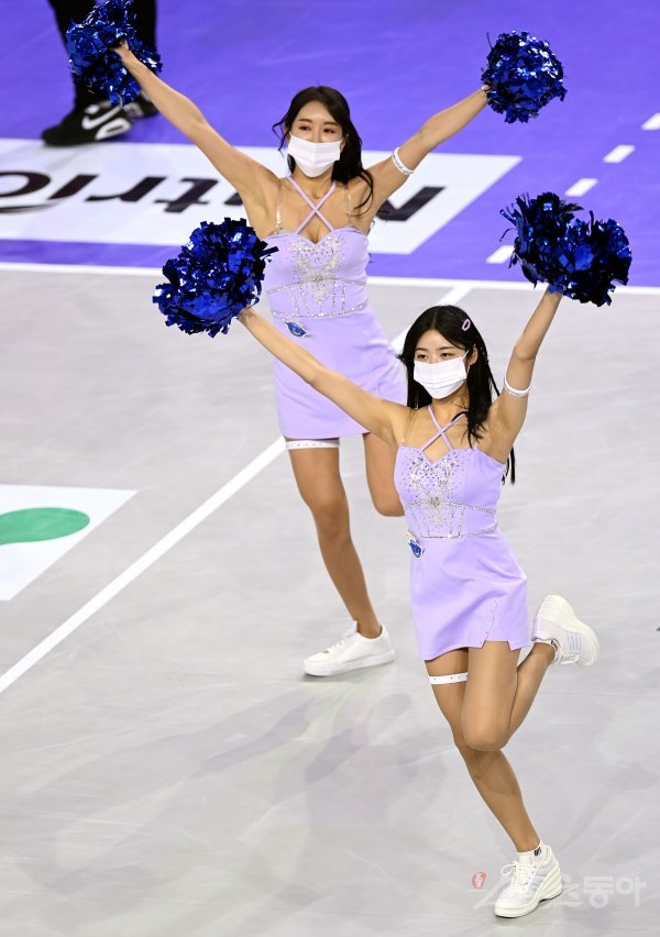 20일 인천 계양체육관에서 ‘2022-2023 도드람 V리그’ 인천 대한항공과 안산 OK금융그룹의 남자부 경기가 열렸다. 대한항공 치어리더가 화려한 공연을 선보이고 있다.
