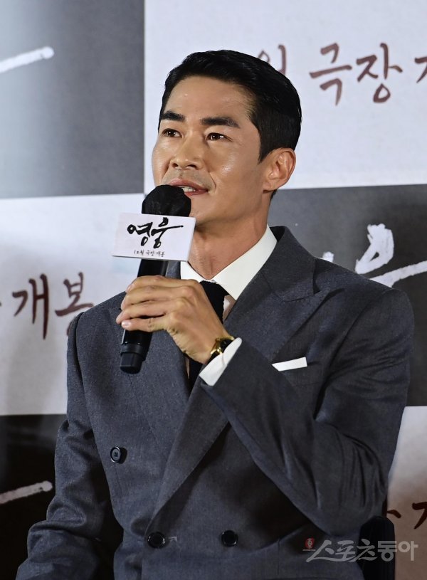 배우 배정남이 21일 서울 용산구 CGV용산아이파크몰점에서 열린 영화 ‘영웅’ 제작보고회에서 인사말을 하고 있다.