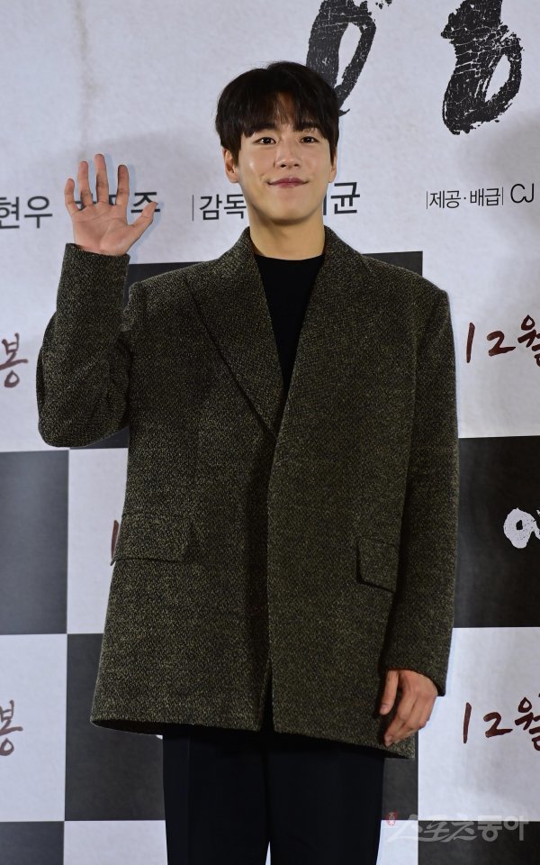 배우 이현우가 21일 서울 용산구 CGV용산아이파크몰점에서 열린 영화 ‘영웅’ 제작보고회에서 포즈를 취하고 있다.