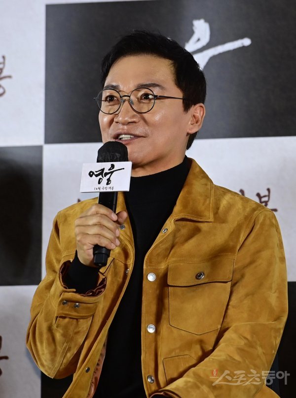 배우 조재윤이 21일 서울 용산구 CGV용산아이파크몰점에서 열린 영화 ‘영웅’ 제작보고회에서 인사말을 하고 있다.