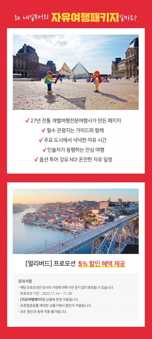 내일투어 서보경 패키지팀 부장은 :자유여행패키지에서는 프리미어리그 홈구장 방문, 파리 유명 빵집 투어, 지중해 해변 일광욕 등 일반 패키지에서는 불가능했던 개인여행의 로망을 실현할 수 있다“며 ”내일투어 지역별 전문 코디네이터들이 만든 추천일정표를 이용하면 자유여행 초보자들도 어려움 없이 즐겁게 여행 가능하다“고 설명했다.