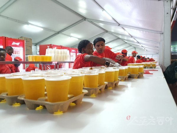 분위기는 역시 대단했습니다. 강렬한 태양과 섭씨 40도에 달하는 기온에도 불구하고 이른 오후부터 버드와이저 부스 앞은 관광객들로 가득했고, 대기 입장이 본격적으로 이뤄진 오후 6시30분부터는 발 디딜 틈 없이 붐볐습니다. 물론 흥은 북중미, 남미 사람들을 빼놓을 수 없겠죠. 멕시코, 코스타리카, 칠레, 아르헨티나, 우루과이, 브라질에서 카타르까지 날아온 이들은 음정도, 박자도 잘 맞지 않는 온갖 노래를 부르더니 그토록 기다린 맥주를 구입한 뒤에는 행복에 빠져들었습니다.