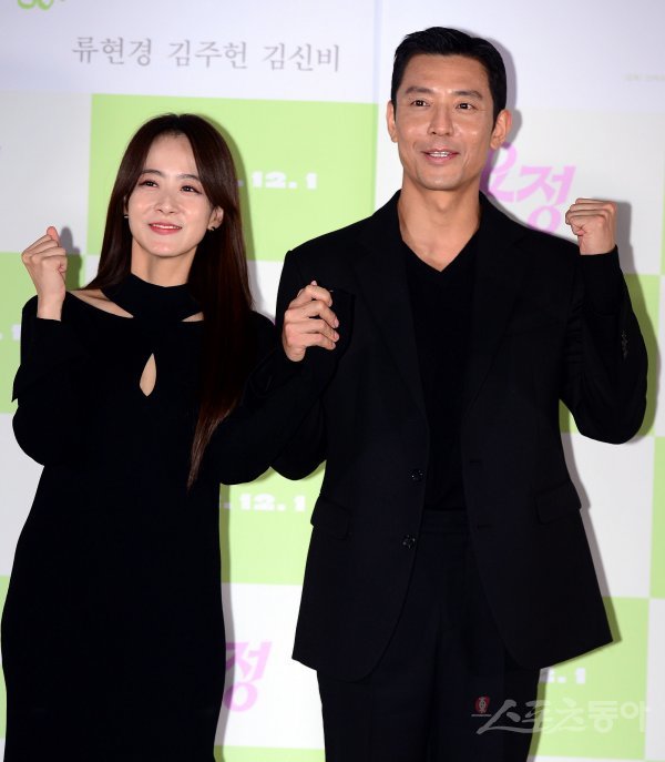 21일 서울 광진구 롯데시네마 건대입구에서 영화 ‘요정’ 언론시사회가 열렸다. 배우 류현경과 김주헌이 카메라를 향해 포즈를 취하고 있다.