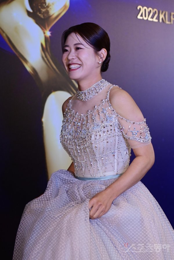 21일 서울 강남구 삼성동 그랜드인터컨티넨탈 서울파르나스에서 열린 ‘2022 KLPGA 대상 시상식’ 포토월에서 프로골퍼 박민지가 웃고 있다.