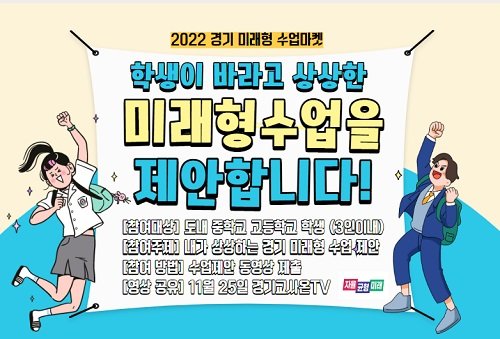 경기도교육청은 학생이 미래형 수업에 대한 바람과 의견을 직접 제안하는 ‘2022 경기 미래형 수업 마켓’을 연다고 22일 밝혔다.