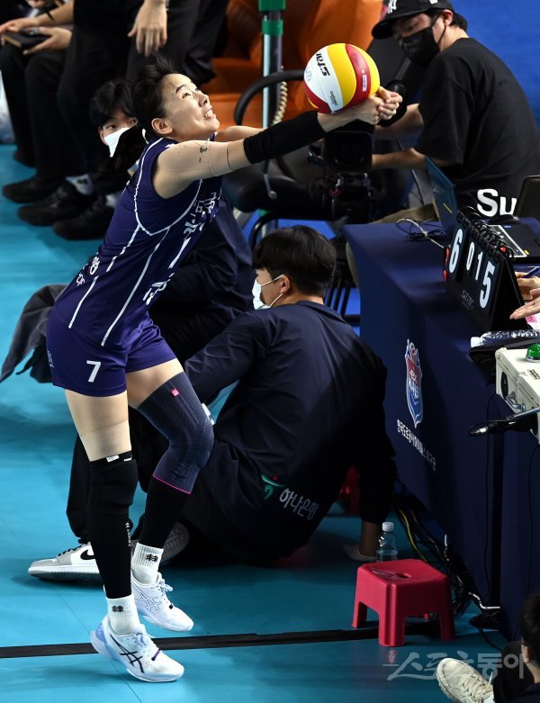 22일 경상북도 김천실내체육관에서 ‘2022-2023 도드람 V리그’ 김천 한국도로공사와 인천 흥국생명의 여자부 경기가 열렸다. 한국도로공사 이예림이 수비를 펼치고 있다.