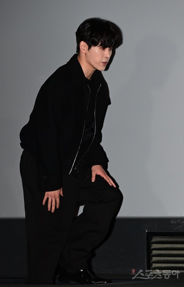 배우 이호원이 23일 서울 용산구 CGV용산아이파크몰점에서 열린 영화 ‘탄생‘ 언론시사회 무대에 오르고 있다.